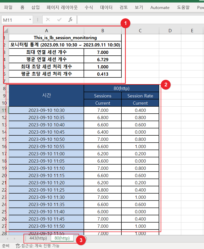 - 로드밸런서 모니터링 엑셀 파일의 구성