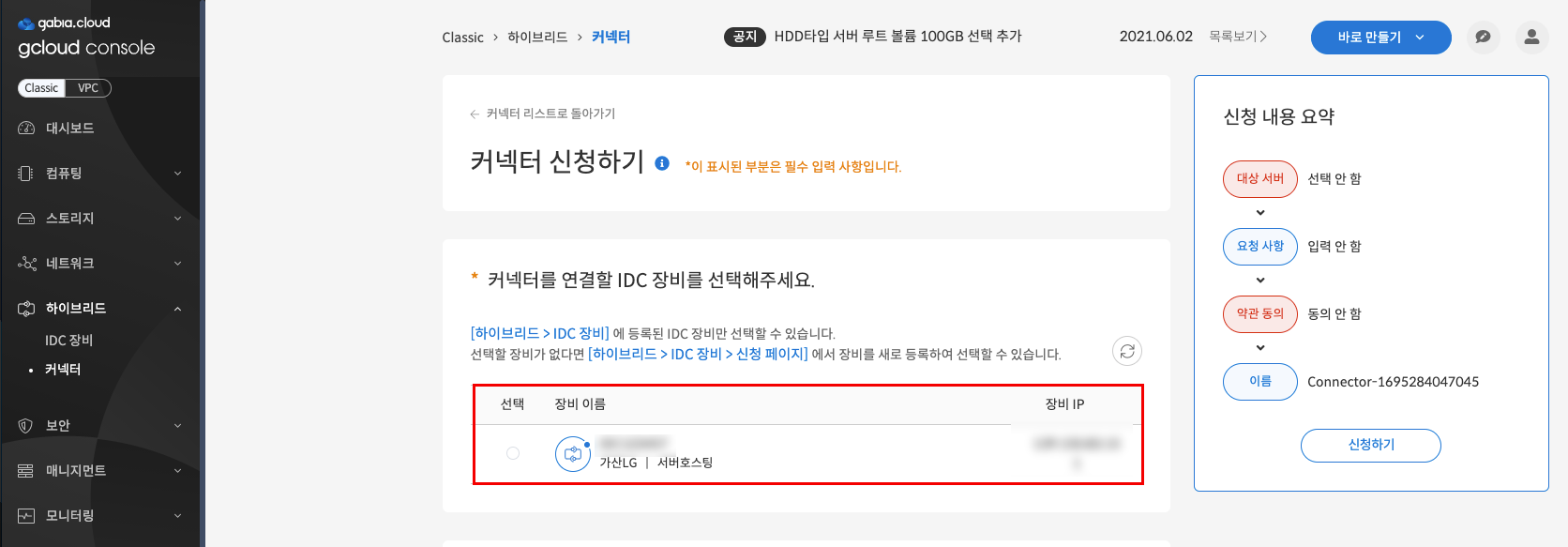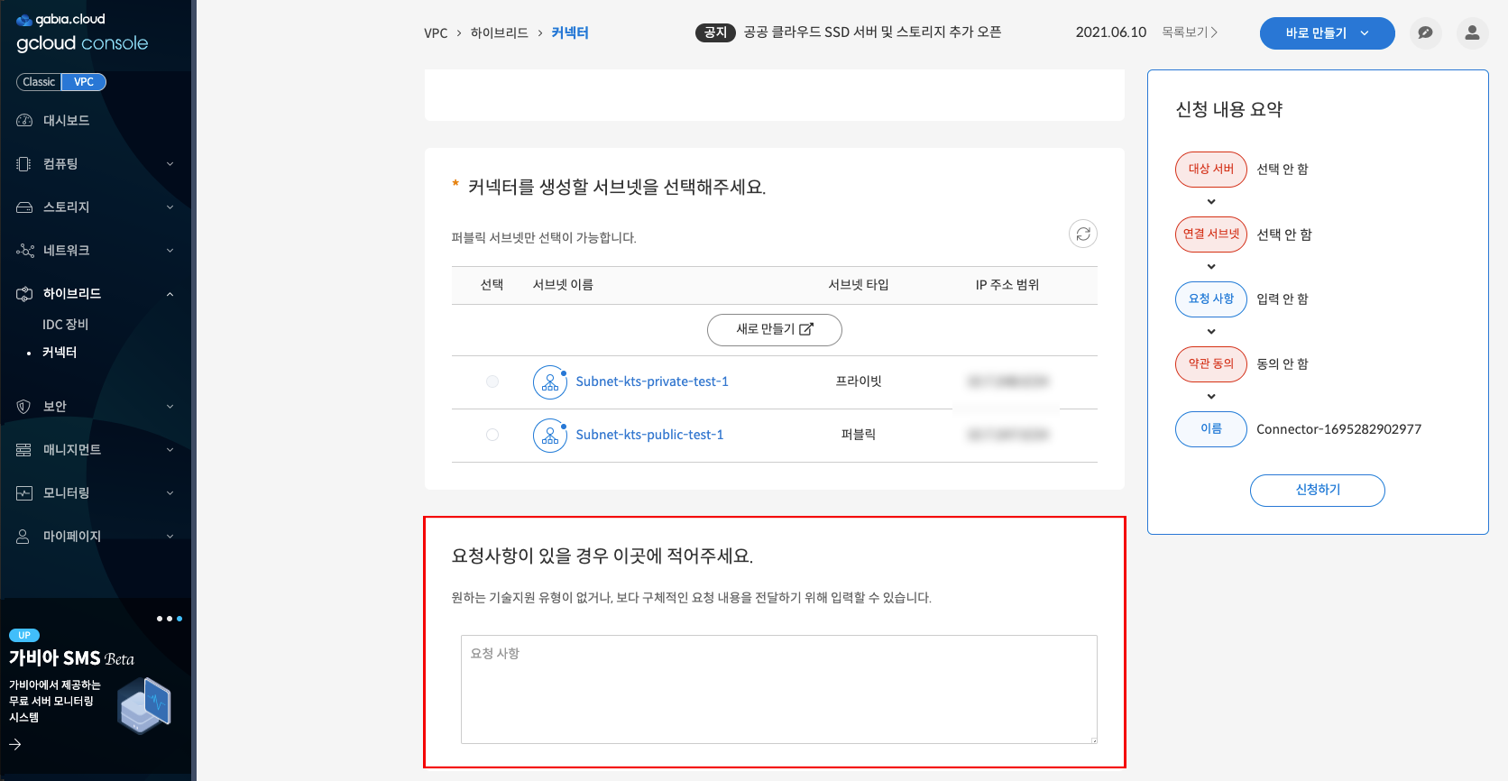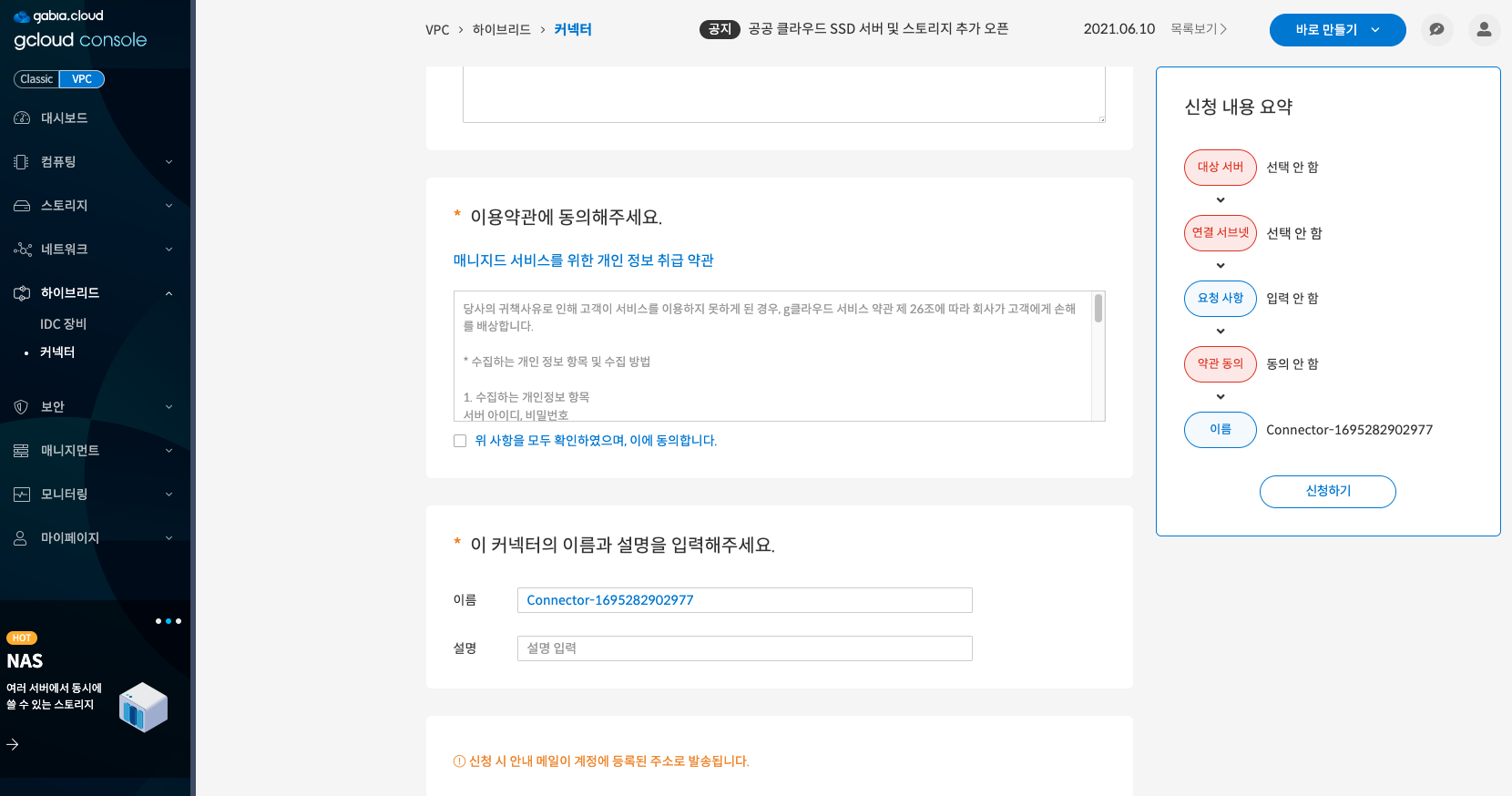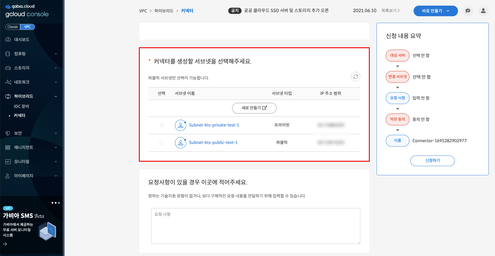 Home > 클라우드 > 가비아 클라우드 Gen1 > 하이브리드 > 커넥터