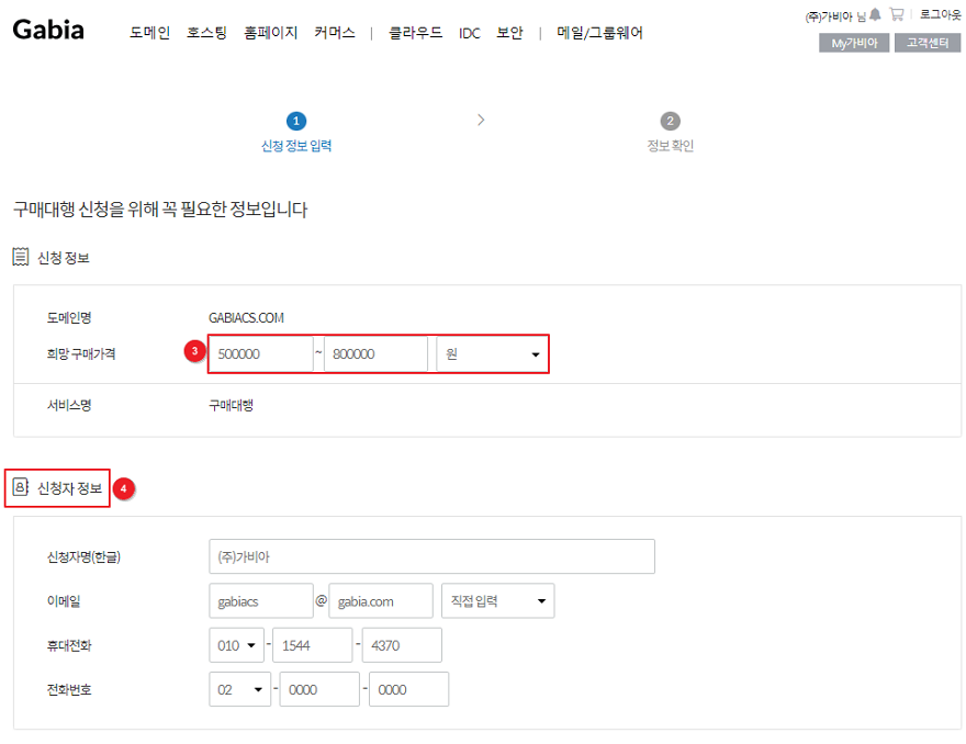 5. 도메인 구매 대행이 접수되면, 가비아가 소유자에게 판매 의사 및 판매 가격을 확인한 후 신청인에게 안내합니다.