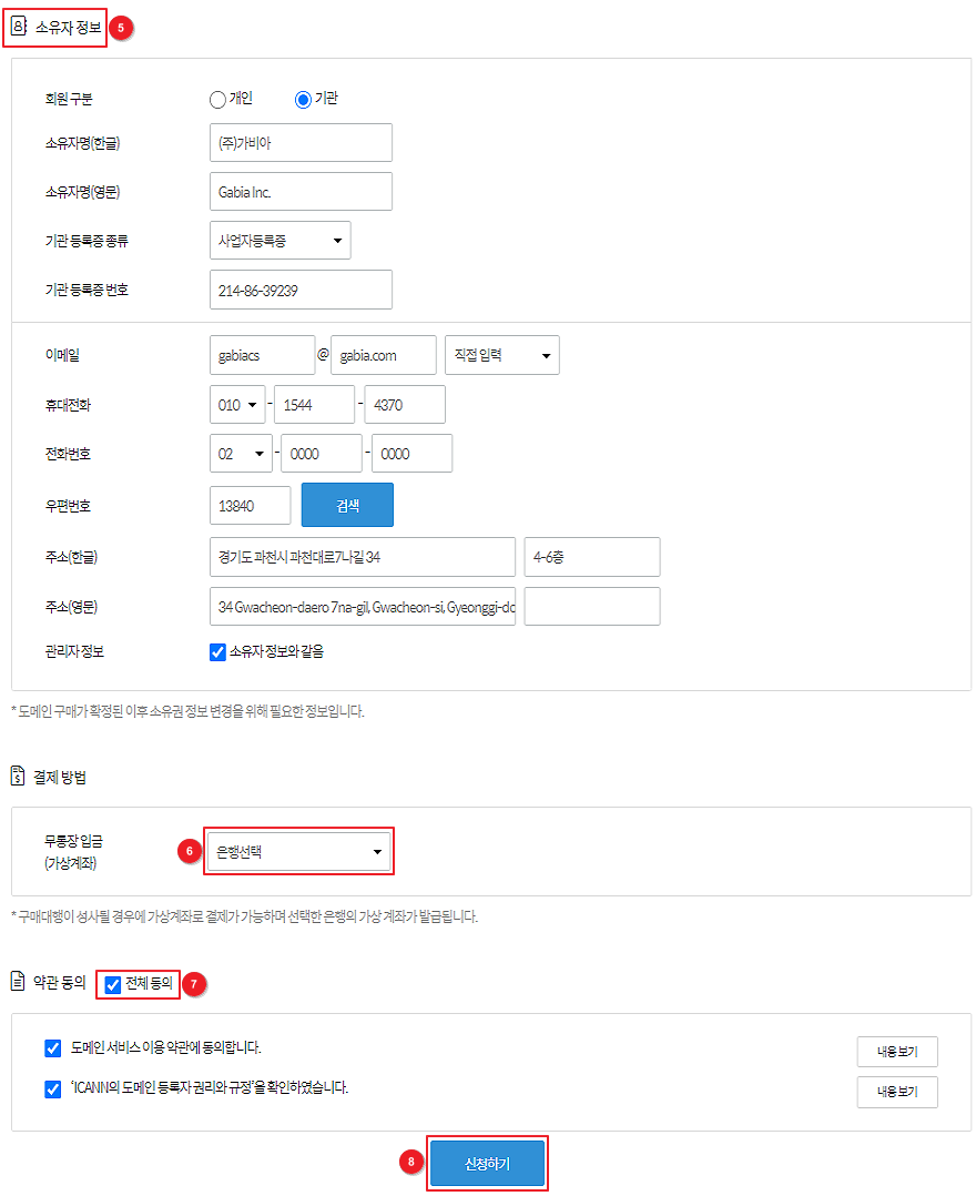 9. 도메인을 판매자로부터 가비아로 기관 이전 및 소유권 이전합니다.