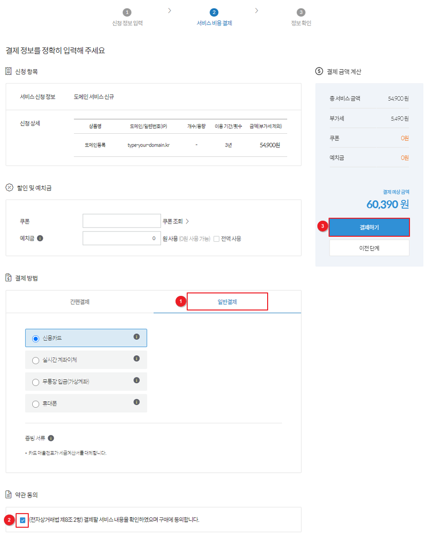 ① 도메인 서비스 이용 약관 및 KISA 개인정보 처리 방침을 확인 후 동의합니다.