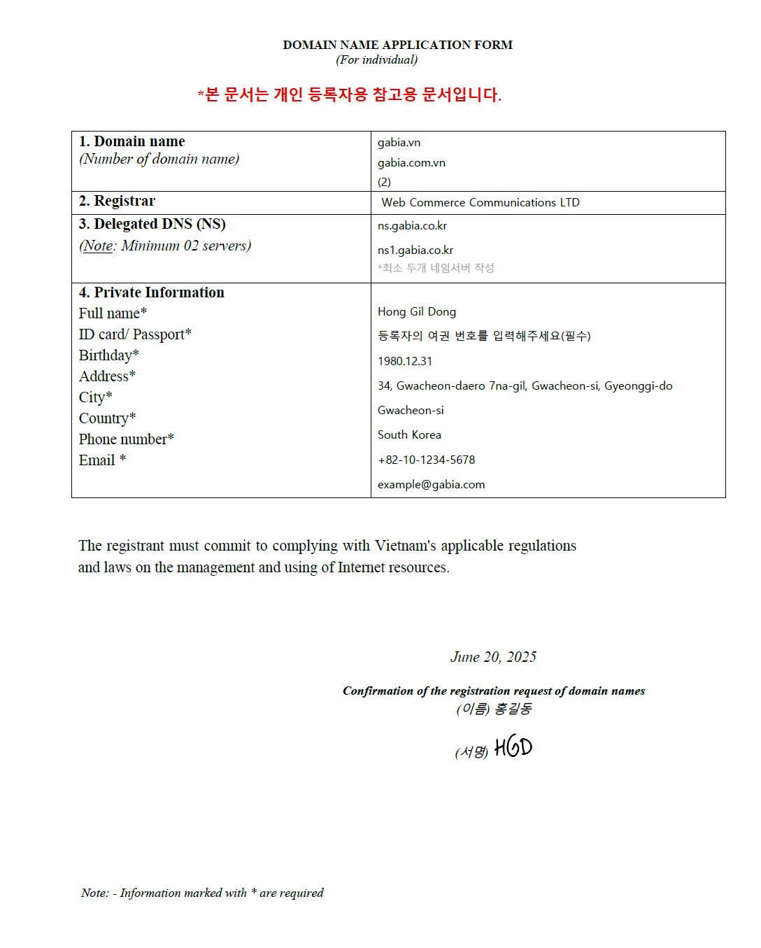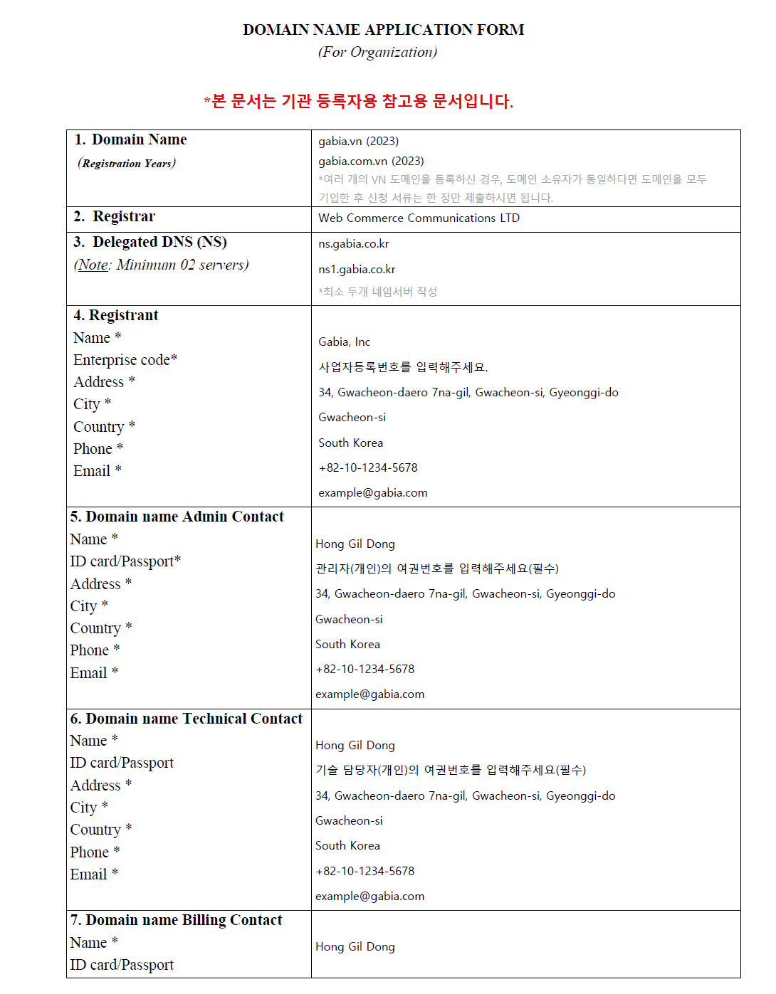 베트남(.VN) 도메인 등록 정책이 변경됨에 따라, VN 도메인 소유자는 도메인 신청 양식을 작성해야 합니다.