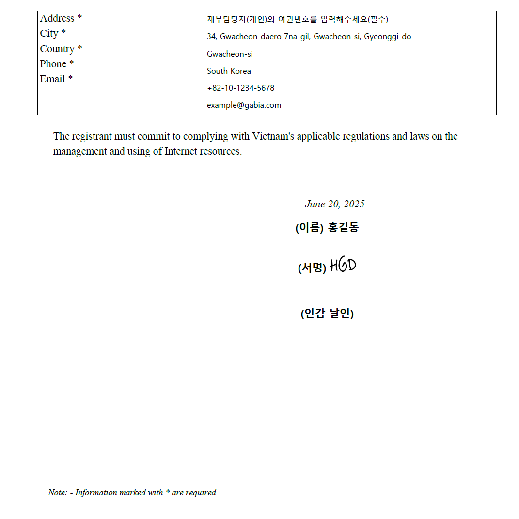 *동일한 등록자 정보로 다수의 VN 도메인을 등록한 경우, 하나의 신청 양식만 제출하시기 바랍니다.