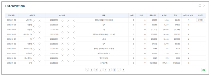 ③ 홈택스 건수 클릭 시 거래처별 세금계산서(계산서)의 상세 내역을 확인 할 수 있습니다.