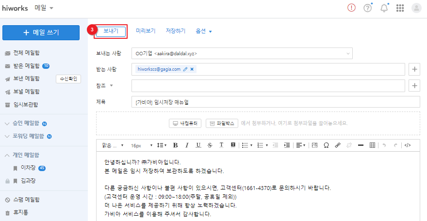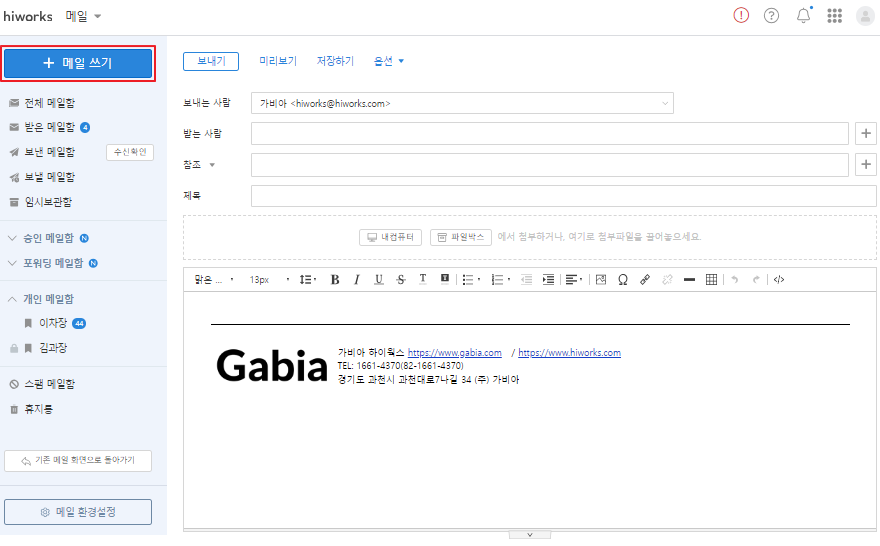 Home > 메일/그룹웨어 > 메일 > 메일 사용하기 > 메일 쓰기
