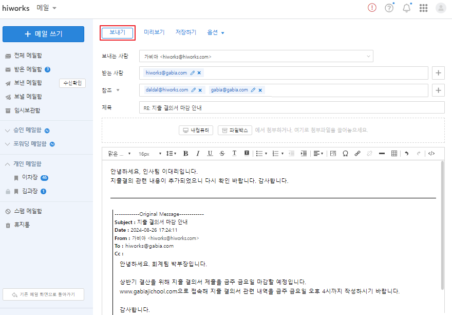 Home > 메일/그룹웨어 > 메일 > 메일 사용하기 > 메일 쓰기
