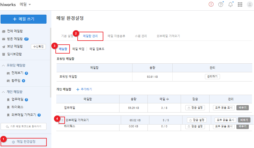 Home > 메일/그룹웨어 > 메일 > 메일 사용하기 > 메일함 관리
