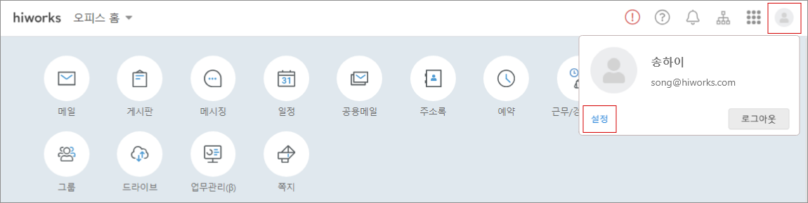 1. 하이웍스 오피스에 로그인합니다.