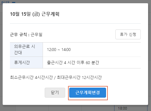 ② 근무계획 보기 페이지에서 근무계획 변경 버튼을 클릭합니다.