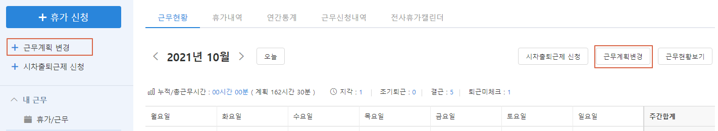 Home > 메일/그룹웨어 > 인사/근무 > 근무관리 사용하기 > 근무계획 변경하기