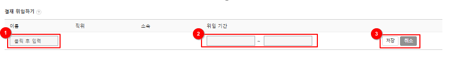 ① 클릭 후 결재 위임할 임직원의 이름을 입력합니다.