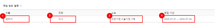 ① 위임한 사람의 이름을 확인할 수 있습니다.