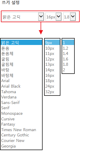 문서 기안 시 사용하는 글꼴, 폰트, 줄 간격과 같은 기본 쓰기 설정을 할 수 있습니다.
