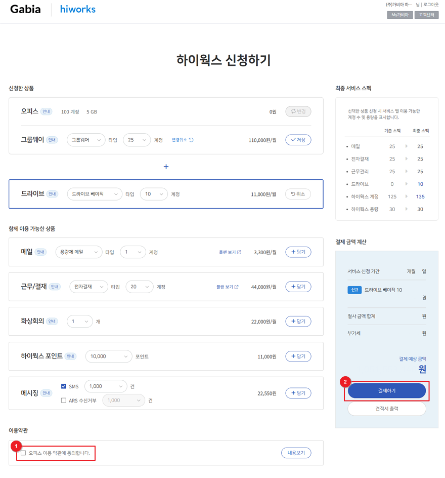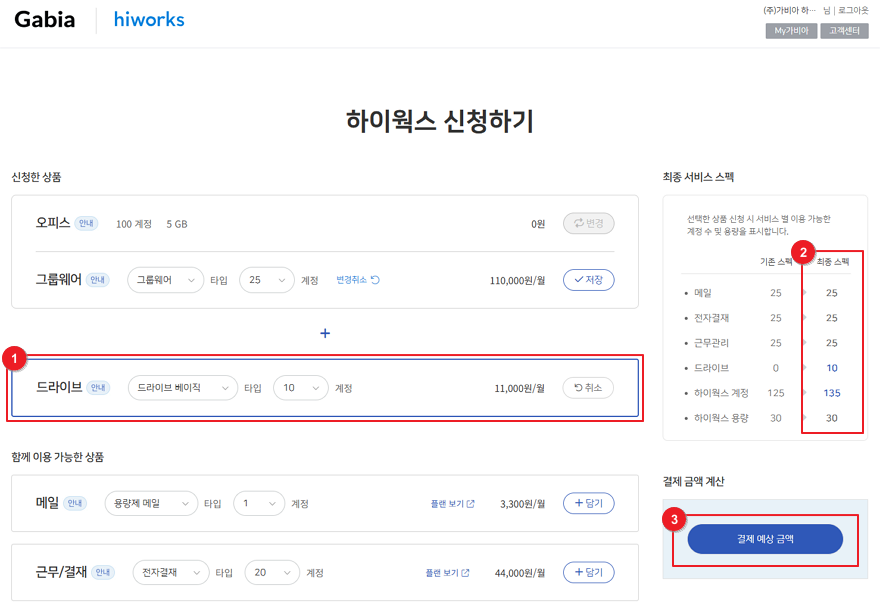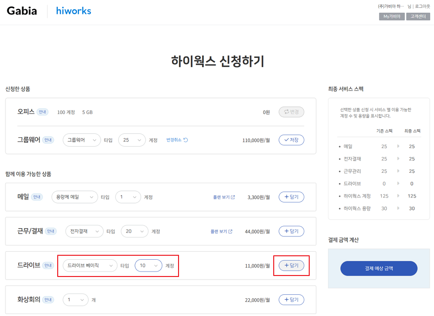 8-3. 새로운 상품을 추가로 신청하는 경우 (예. 드라이브 베이직 10 계정 추가)