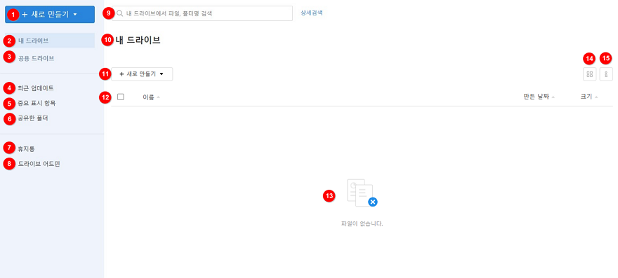 ② 내 드라이브 - 내가 생성한 폴더와 업로드한 파일들을 확인할 수 있습니다.