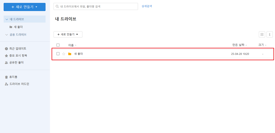 5. 새 폴더 생성이 완료되면 아래와 같이 목록에서 확인할 수 있습니다.
