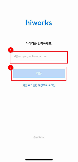 4. 하이웍스 앱 설치를 완료했다면 앱을 실행해 로그인합니다.