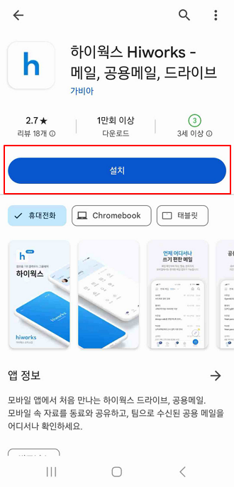 3. [설치]를 클릭해 하이웍스 앱을 다운로드합니다.