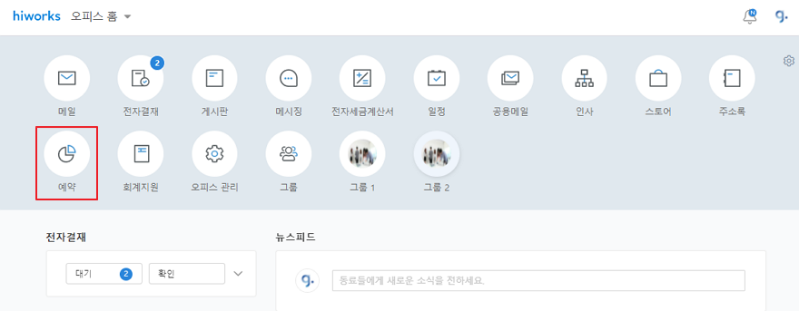 1. 하이웍스 오피스에 로그인합니다.