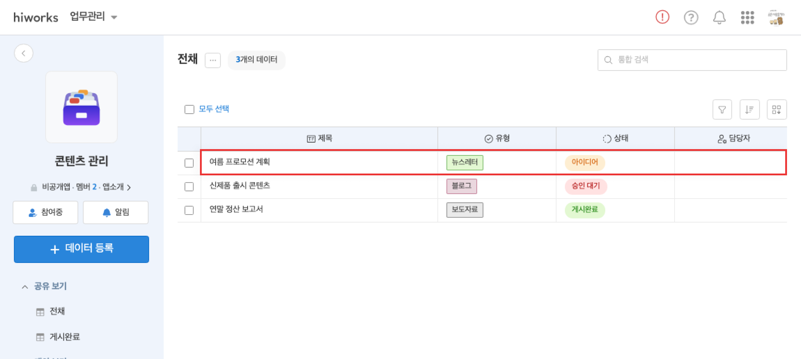 Home > 메일/그룹웨어 > 업무관리 > 업무관리 사용하기 > 업무 앱
