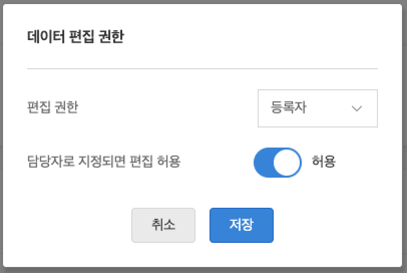 - 데이터의 담당자로 지정된 사용자인 경우, 해당 데이터를 편집할 수 있도록 허용할지 설정할 수 있습니다.