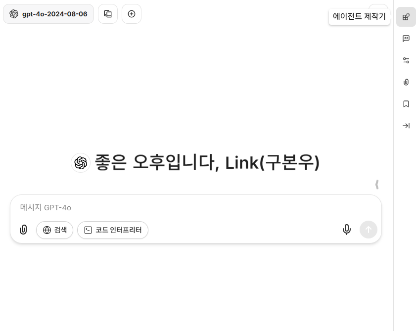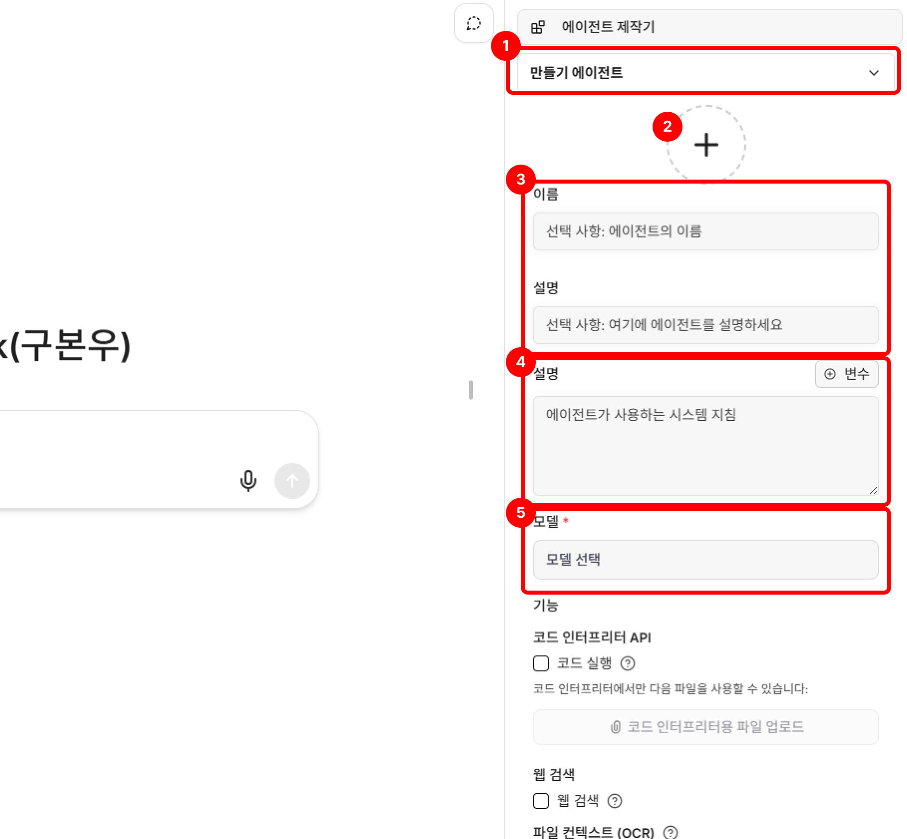1. 우측 패널 메뉴바에서 에이전트 제작기를 클릭합니다.