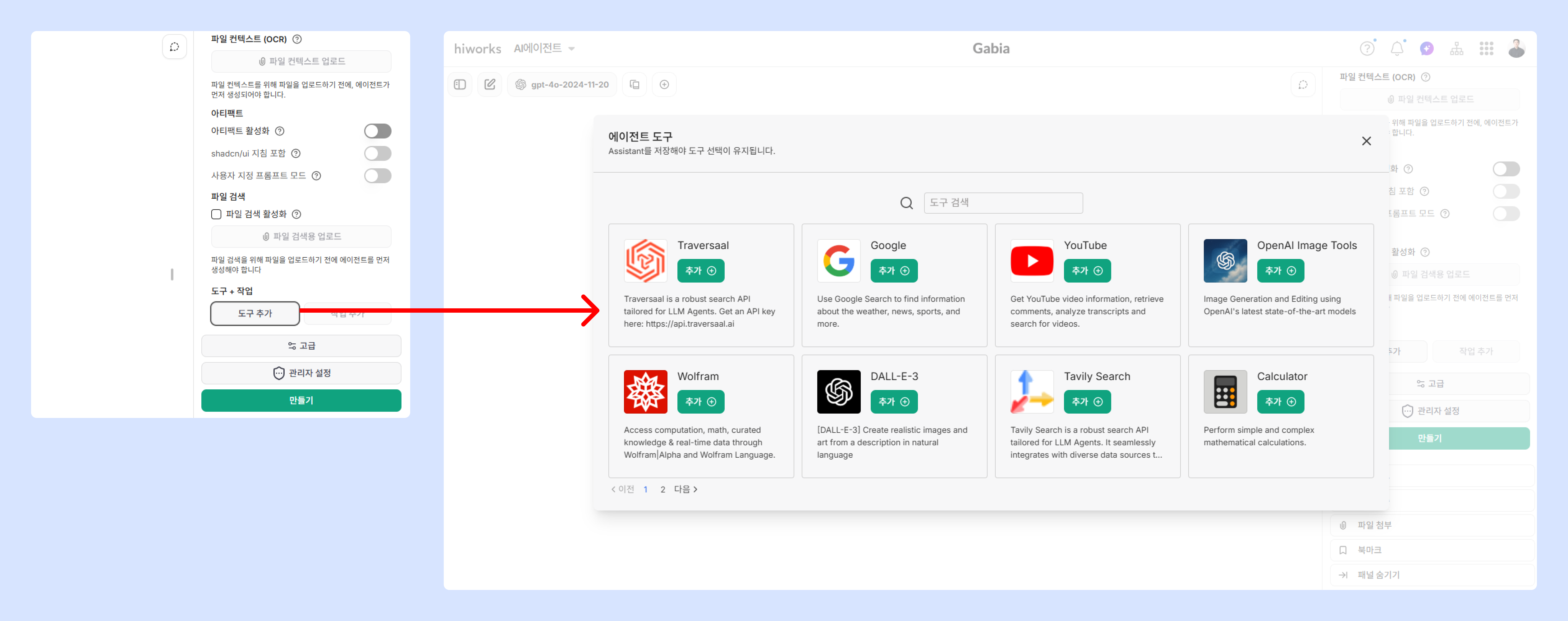 1. 에이전트 생성 팝업에서 [도구 추가] 버튼을 클릭합니다.