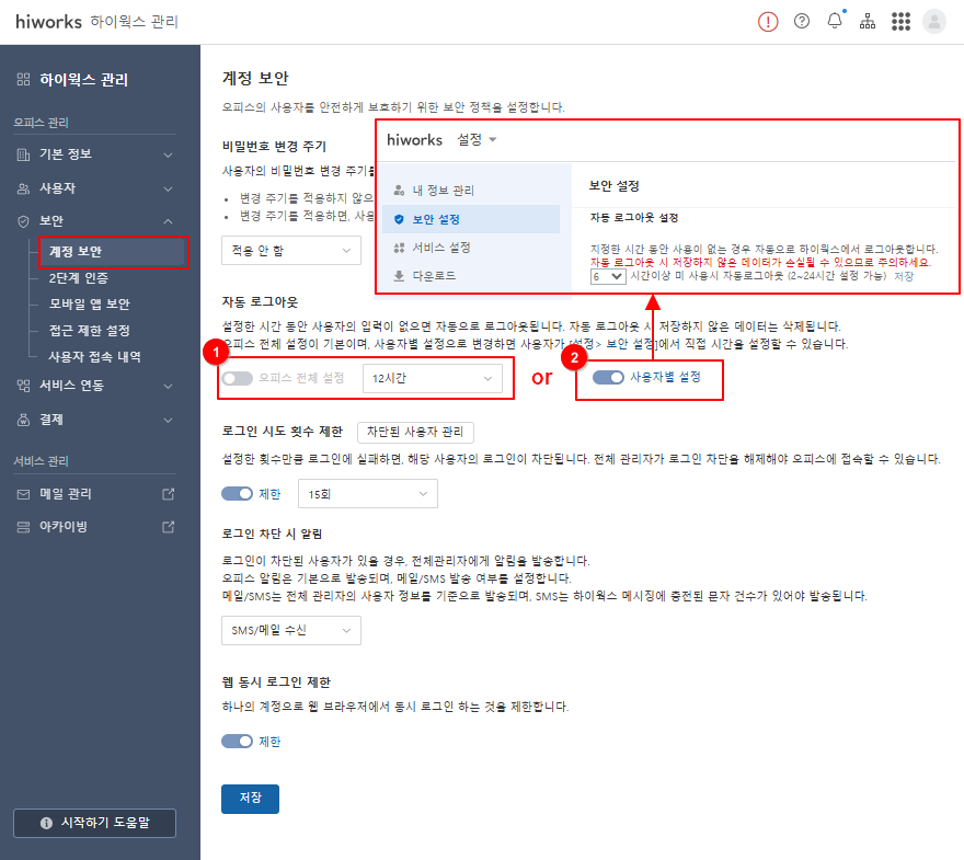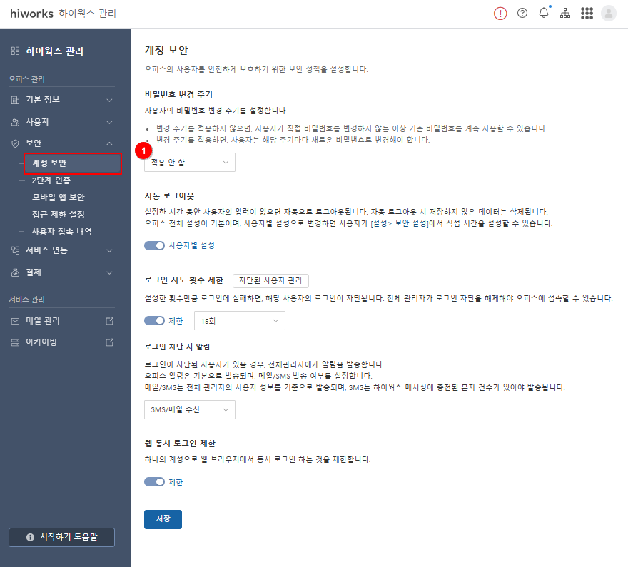 Home > 메일/그룹웨어 > 하이웍스(New) > 오피스 관리하기 > 보안