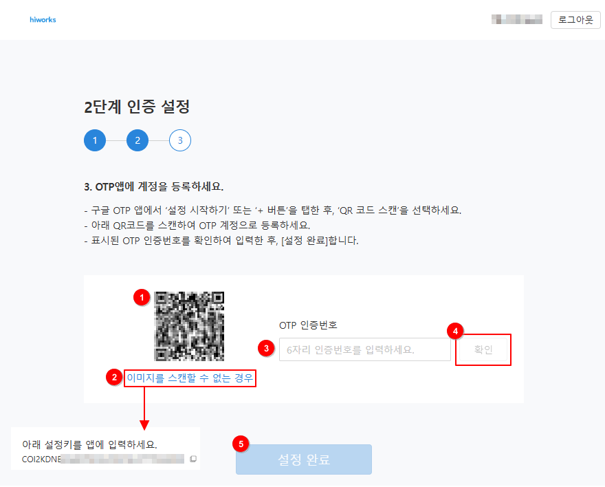 ③ Google OTP/Authenticator 앱에 생성된 인증번호를 입력합니다.