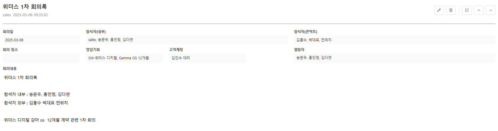 - 목록화면에서 선택한 회의의 저장된 데이터를 확인할 수 있습니다.