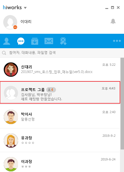 1. 하이웍스 메신저에 로그인합니다.