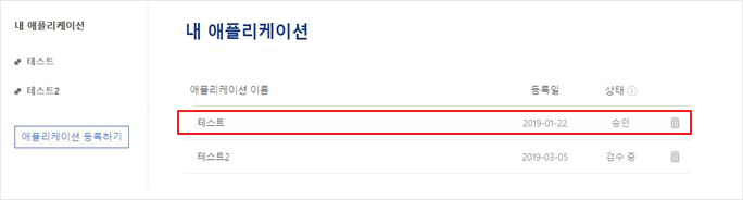 • 이미 승인된 애플리케이션의 API 설정을 변경할 수 있습니다. 다만, 사용 API를 변경하는 경우에는 애플리케이션 사전 검수를 다시 진행해야 합니다. 신규 등록과 동일한 프로세스로 진행되어, 작업 일정을 고려하여 수정해주시기 바랍니다. |