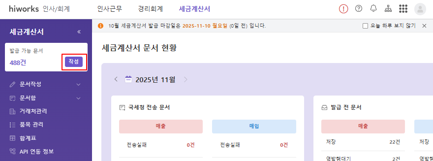 ① 세금계산서 작성페이지 통합 설정