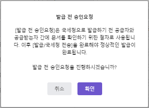 ③ 발급 전 승인요청 : 작성한 세금계산서를 국세청으로 전송하기 전 공급받는 자에게 승인/반려를 요청할 수 있습니다.