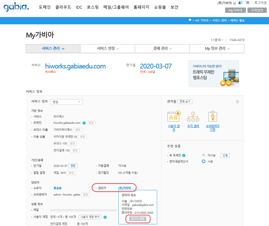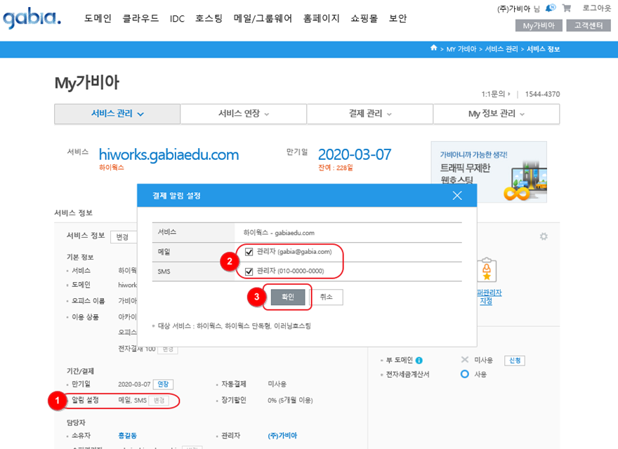 Home > 메일/그룹웨어 > 메일 > 서비스 관리하기 > gabia.com 구매 고객