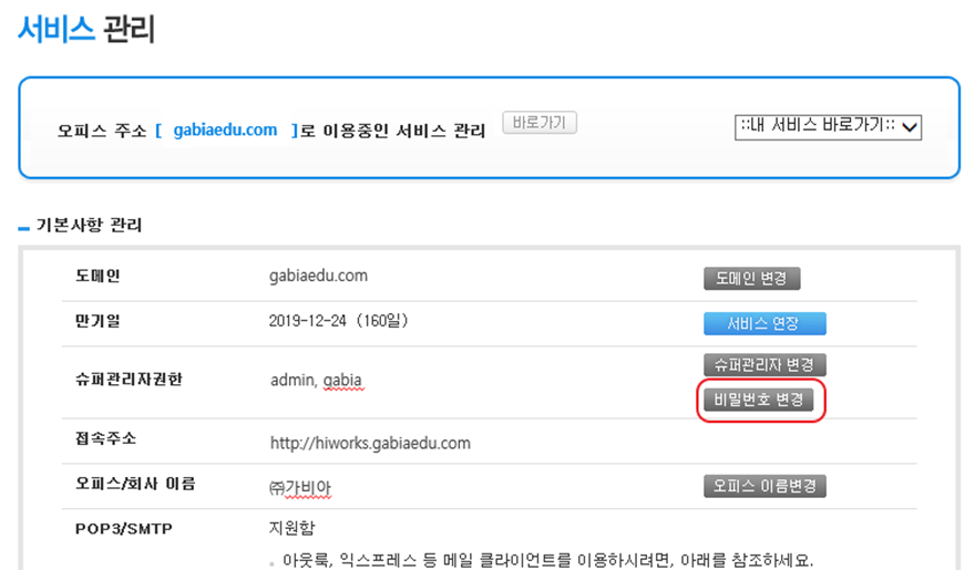 Home > 메일/그룹웨어 > 메일 > 서비스 관리하기 > hiworks.com 구매 고객