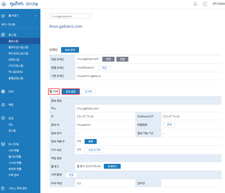 Home > 호스팅 > 웹호스팅 > 보안 설정