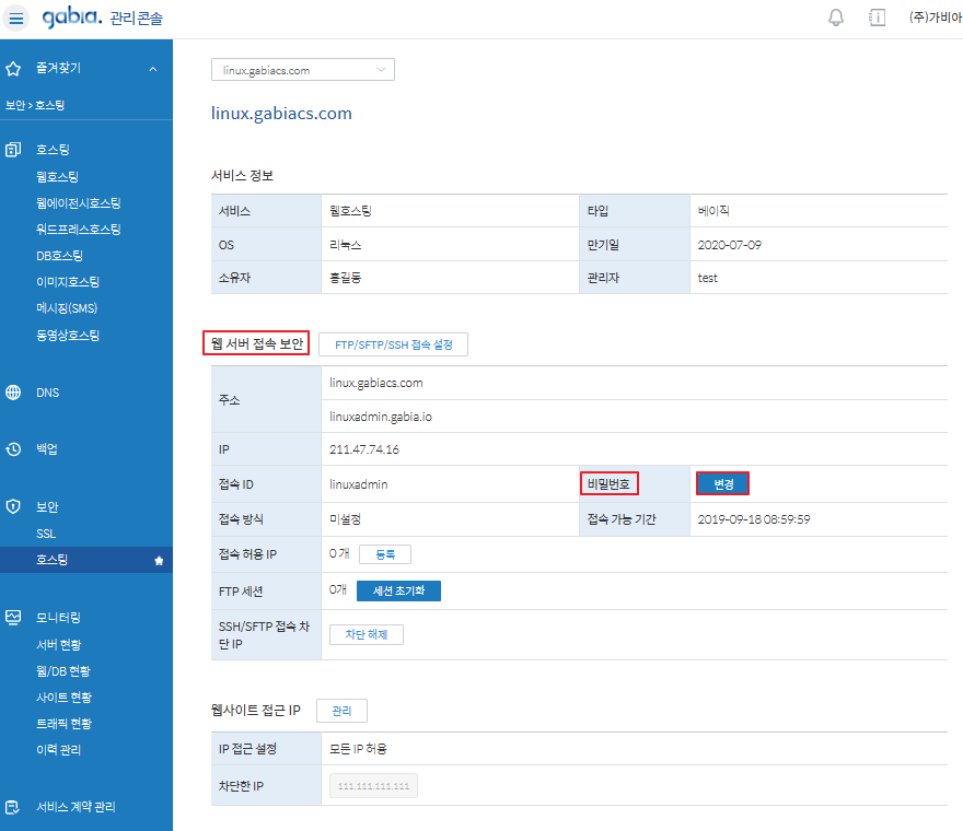웹 서버(FTP/SFTP/SSH) 비밀번호 변경하기