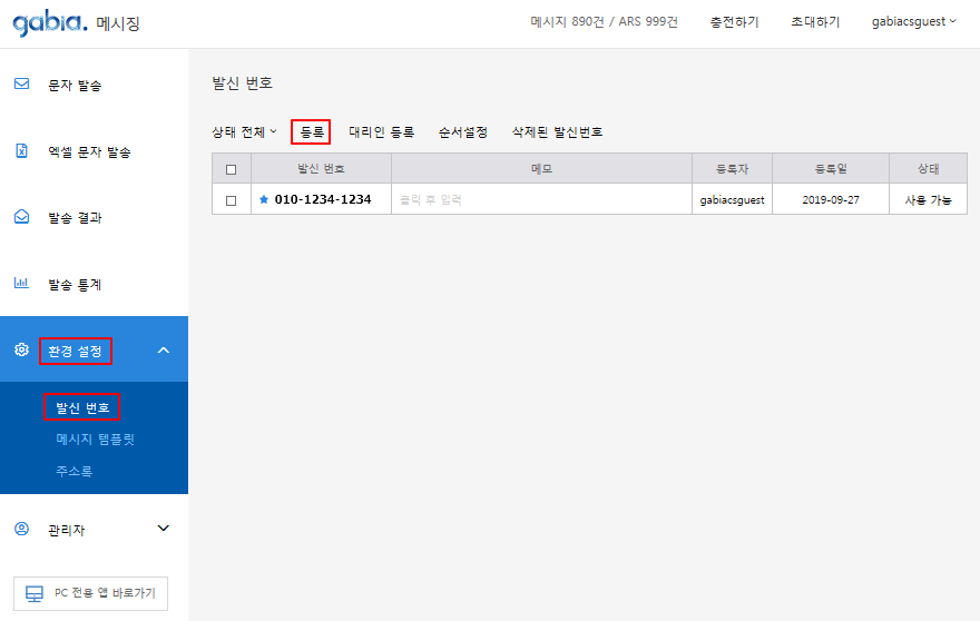 • 발신 번호 등록 후 발신 번호 리스트 내 메모 영역을 클릭 후 입력해 용도 구분을 위한 내용을 저장할 수 있습니다. 해당 기능은 발신 번호의 상태가 ‘사용 가능’인 경우에만 사용할 수 있습니다. • 메시징 관리툴 신규 세팅 후 최초로 인증 및 등록한 개인 회원의 휴대전화 발신 번호는 별도 순서 설정 없이 사용하는 발신번호로 즉시 등록됩니다. 이후 등록한 휴대전화 번호는 등록 후 순서 설정을 직접 진행해야 합니다. |