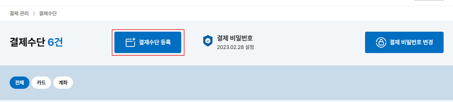 2. 연결된 페이지 내의 [결제수단 등록] 버튼을 클릭합니다.